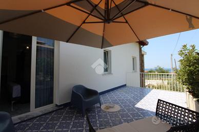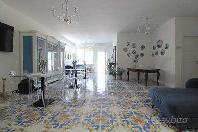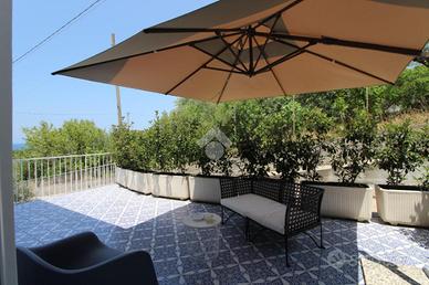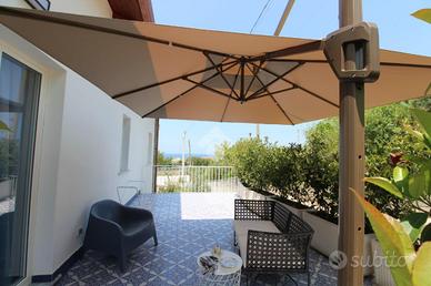 In Via Togliatti, villa indipendente di nuova costruzione, situata in una posizione strategica a soli 600 metri dalle spiagge del Lungomare. L'immobile gode di una meravigliosa vista mare ed è circondato da un ampio spazio esterno di circa 750 mq, suddiviso tra area pavimentata, giardino e zona adibita a posti auto. La villa si sviluppa su tre livelli, per una superficie interna complessiva di circa 400 mq, ed è progettata per offrire il massimo del comfort e della funzionalità, sia come residenza per famiglie numerose che come investimento per locazioni turistiche o plurifamiliari. Al piano terra troviamo due appartamenti: il primo è un bilocale diviso in soggiorno con angolo cottura, una camera da letto e un bagno; il secondo è un appartamento più ampio, con soggiorno, cucina abitabile, bagno, cantina e una camera utilizzabile come studio. Da quest'ultimo, una scala interna conduce al primo piano, dove si sviluppa la zona notte principale. Il primo piano ospita tre camere da letto, ognuna con bagno privato. Due delle camere dispongono di ampi balconi coperti con vista mare, mentre la terza è dotata di un terrazzo di circa 20 mq. Sullo stesso livello è presente anche una porzione attualmente allo stato grezzo, che verrà rifinita in un ulteriore appartamento con soggiorno con angolo cottura, una camera da letto e un bagno. Il secondo e ultimo piano mansardato è anch'esso allo stato grezzo, ma verrà completato realizzando due appartamenti distinti, ciascuno composto da soggiorno con angolo cottura, una camera da letto, un bagno e un terrazzo con vista mare. La villa si distingue per le sue rifiniture moderne e di pregio, tra cui pavimenti in ceramica vietrese, doppi infissi e impianto di climatizzazione in tutti gli ambienti. L'intera struttura è pronta per essere abitata e offre una soluzione abitativa versatile, perfetta per più nuclei familiari che desiderano vivere vicini mantenendo la propria indipendenza. Grazie alla vicinanza al mare e alla struttura già pr...