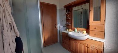 La soluzione ha doppio accesso, si può entrare quindi sia dalla taverna molto spaziosa tramite un'entrata secondaria situata vicino al portico dove troviamo anche un ampio riportiglio o deposito per attrezzi e un bagno di servizio o dall'entrata principale situata al primo piano che raggiungiamo grazie a una scala esterna dove abbiamo un piccolo balconcino e la porta d'ingresso.