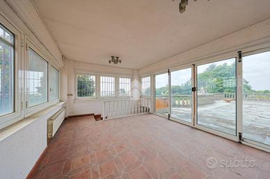 Al piano terra si apre un elegante atrio d'ingresso che conduce a un salone doppio con grandi finestre affacciate sul giardino.