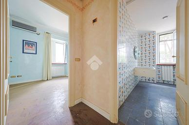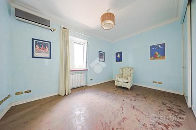 Le restanti camere, tutte di ampia metratura, si affacciano su terrazzi abitabili con vista sul parco. Due bagni finestrati, rifiniti con materiali di qualità, completano il piano.