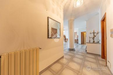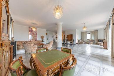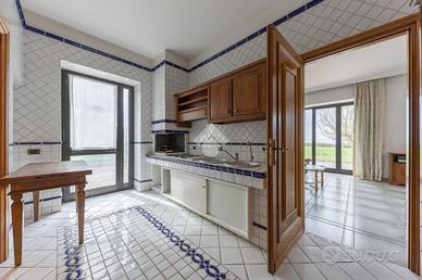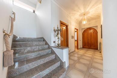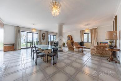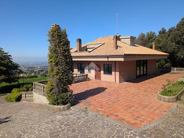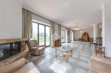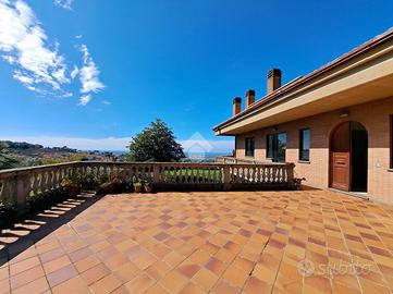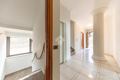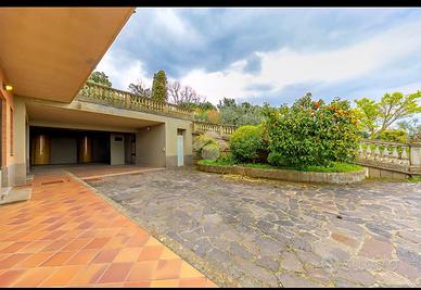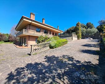 CASTEL GANDOLFO - Via Appia Nuova. In un' OASI di VERDE, VICINISSIMA a TUTTI I SERVIZI e a 500 metri dalla piazza principale di Albano Laziale, proponiamo in POSIZIONE DOMINANTE, PRESTIGIOSA VILLA UNIFAMILIARE composta da 3 appartamenti ognuno con ENTRATA INDIPENDENTE ma collegati tra loro da ASCENSORE INTERNO. Al piano terra, l' appartamento interno 1 è composto da : GRANDE SALONE DI RAPPRESENTANZA con camino, cucina abitabile in muratura con locale dispensa finestrato, 2 camere, doppi servizi e ripostiglio. Al piano 1°, l' appartamento interno 2 è composto da: comodo ingresso, AMPIO SALONE con camino, cucina abitabile con locale dispensa finestrato, 2 camere matrimoniali, studio, doppi servizi finestrati, balcone perimetrale e GRANDE TERRAZZO PANORAMICO. Al piano 2°, l' appartamento interno 3 è composto da: zona giorno con angolo cottura, camera da letto, doppi servizi finestrati, oltre a due comodi ambienti sottotetto finestrati. 3 TERRAZZI. LOCALE GARAGE di mq. 70 circa. LOCALE MAGAZZINO di mq. 40 circa. CENTRALE elettrica con TERRAZZO PENSILE e lavanderia. Grazie alla generosa metratura degli spazi sia interni che esterni, questa soluzione si presta a molteplici possibilità di destinazioni e utilizzi, oltre alla possibilità di soddisfare le esigenze di una grande famiglia. PARCO PRIVATO di mq. 5000 con ulivi e vegetazione mediterranea. PANORAMICISSIMA.
