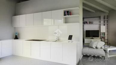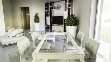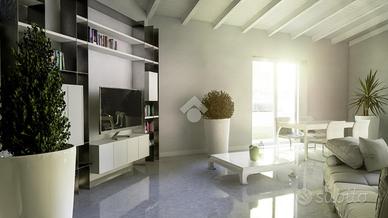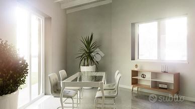 L'abitazione si sviluppa tutta su un unico livello, con giardino privato. La zona giorno è composta dal salone con cucina a vista, mentre nella zona notte troviamo le due camere da letto e un bagno finestrato.