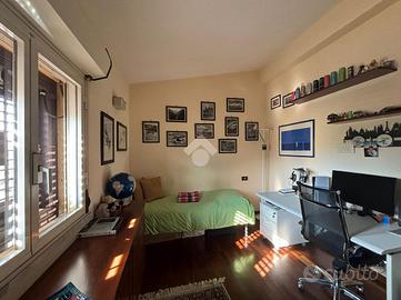 Al piano superiore troviamo la zona notte, composta da due camerette e una camera matrimoniale con affaccio su un delizioso terrazzino comunicante ad un secondo studio.
