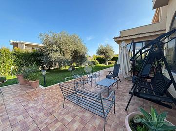 LA VILLA: Unifamiliare su due livelli immersa in un ampio spazio esterno caratterizzato da aiuole curate, alberi d'ulivo, zona barbecue e posti auto riservati.