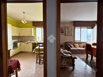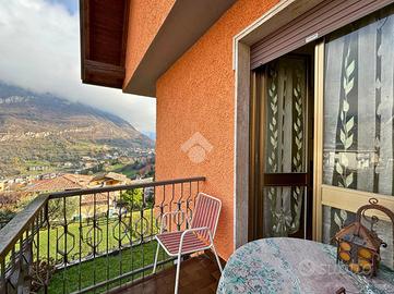 Salendo al piano primo da una scala esterna, si accede al secondo appartamento, anch'esso un trilocale ma con spazi più ampi, in cui cucina e soggiorno sono separati e affacciati ciascuno sul proprio balcone, permettendo di godere di una piacevole vista sull'abitato di Angolo Terme.