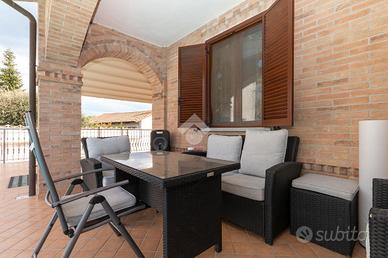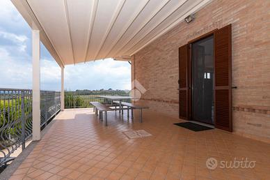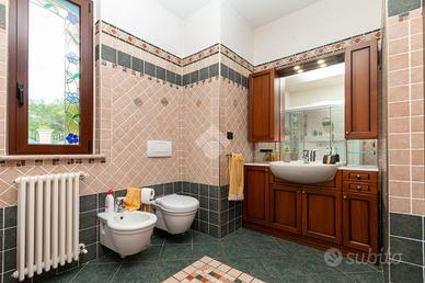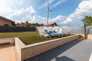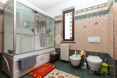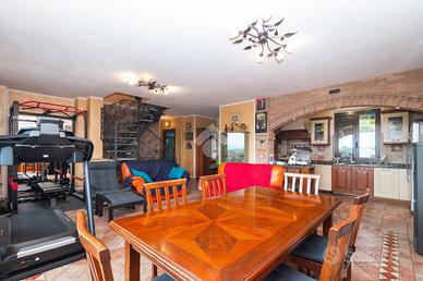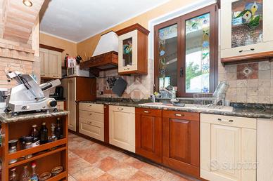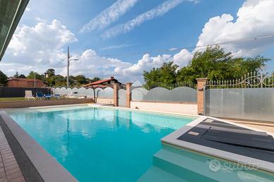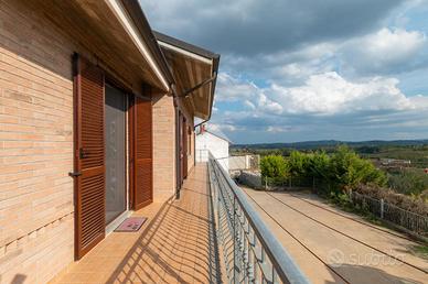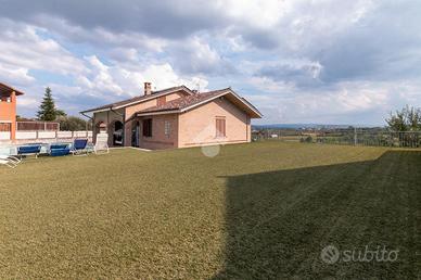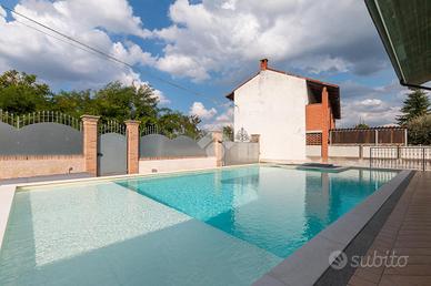 ANTIGNANO d'ASTI- Villa singola in splendida posizione panoramica, non isolata, con piscina interrata di nuovo realizzo. La casa è molto recente, perfettamente rifinita, dotata di riscaldamento ibrido. Internamente, al piano terreno, dall'ampio ingresso si accede al soggiorno con angolo cottura e bella vetrata con visuale sulle colline ed alla spaziosa camera da letto con cabina armadio e bagno. Nel piano sottostante sono presenti tre camere, un bagno/lavanderia ed il locale tecnico, con centrale termica e di gestione dell'impianto fotovoltaico con accumulatori. Dal cortile sottostante si accede al garage triplo ed all'ulteriore capannoncino utile anche in caso di attività che necessitino di magazzino. La proprietà ha moderne soluzioni di isolamento termico nelle pareti, è completamente cintata in modo da garantire la privacy e comprende un terreno di circa 5.000 mq.