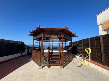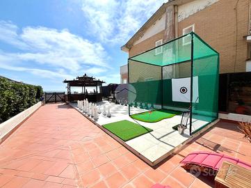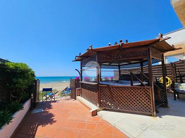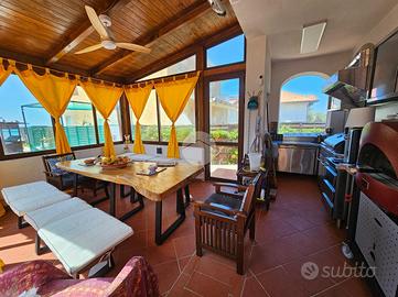 Su Area Demaniale Villa singola di 220 mq su 3 livelli. Piano terra composto da: ingresso, sala, cucina a vista, sala da pranzo, bagno, veranda con cucina esterna. Piano primo composto da: disimpegno, 3 camere con 3 bagni all'interno di ogni stanza di cui uno dotato anche di vasca idromassaggio. Sala hobby con camino composta da angolo bar, cabina armadio, bagno e locale magazzino. Veranda di 30 mq, Balcone di 7 mq, Terrazzo di 12 mq, Posto Auto di 65 mq, Campo da bocce di 25mq e Corte mattonata di 350 mq con Accesso carrabile e pedonale.