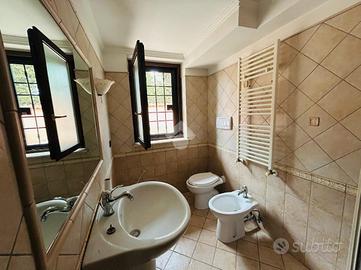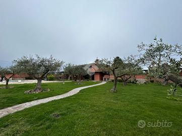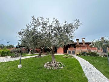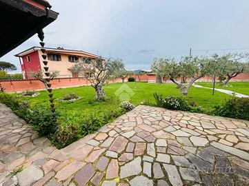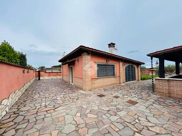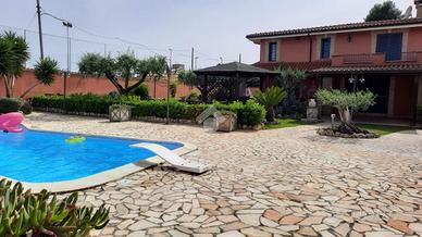 Elegante villa unifamiliare strutturata su 2 livelli, su lotto di terreno di 2100 mq ottimamente ristrutturata nel 2006. Al piano terra ingresso, ampio salone con camino, cucina abitabile, bagno finestrato con doccia e ripostiglio lavanderia finestrato. Annessa veranda di 53 mq con forno esterno. Al 1°piano, servito da 2 balconi, troviamo 3 camere da letto con pavimentazione in parquet e 2 bagni finestrati con doccia. Una delle 3 camere presenta internamente uno dei bagni ed una cabina armadio. Sul curato giardino esterno è presente una piscina interrata con annesso rispostiglio spogliatoio adiacente.