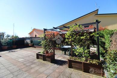 Arcore - Zona Semicentro: A pochi minuti dal centro e dalla stazione, in una tranquilla zona residenziale e comoda con tutti i principali servizi, proponiamo in vendita una villa singola di quattro locali, disposta su un unico livello abitativo oltre sottotetto e piano seminterrato. L'immobile si estende su una superficie di 210 mq commerciali e vanta un giardino ed un ampio terrazzo di circa 80 mq, ideali per momenti di relax all'aperto. Dall'ingresso si accede alla zona giorno, composta da una spaziosa zona living e da una cucina abitabile, quest'ultima con accesso diretto al terrazzo; il disimpegno separa la zona notte, che include una camera matrimoniale con cabina armadio, una seconda camera da letto ed un bagno finestrato con doccia. Una comoda scala interna conduce alla mansarda agibile non abitabile, caratterizzata da travi a vista, dove troviamo un luminoso locale openspace, perfetto come studio o zona hobby; una camera da letto aggiuntiva ed un bagno. Al piano seminterrato vi è un'accogliente taverna con camino, ideale per momenti conviviali, un pratico locale lavanderia, un ampio bagno ed un ripostiglio. Completano la proprietà la cantina e l'autorimessa di circa 80 mq con accesso diretto all'abitazione. L'immobile è stato completamente ristrutturato nel 1996 e presenta finiture di pregio come parquet al piano terra, cotto al piano sottotetto e gres porcellanato al piano seminterrato; i serramenti sono in legno con doppio vetro, le persiane in alluminio effetto legno ed i lucernari sono stati recentemente rinnovati. Il riscaldamento, suddiviso per piano, garantisce il massimo comfort in ogni ambiente, mentre il sistema di antifurto offre un ulteriore livello di sicurezza. Inoltre la basculante del box è automatizzata ed il motore è stato sostituito di recente. Questa villa singola rappresenta la soluzione ideale per una famiglia numerosa che cerca ampi spazi e desidera vivere in un contesto residenziale tranquillo, senza rinunciare alle comodità del c