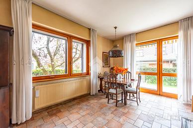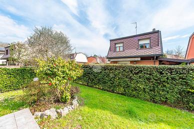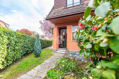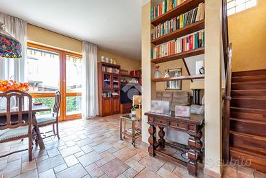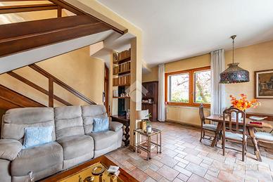 Al piano terra, l'ingresso si apre su un soggiorno doppio, estremamente luminoso grazie alle ampie vetrate che danno accesso diretto al giardino privato. L'ampia cucina, separata e ben organizzata, è perfetta per cucinare in tranquillità e offre anche uno spazio per pranzi e cene informali. Completa il piano un pratico bagno di servizio e una lavanderia, molto comoda per la gestione quotidiana della casa.