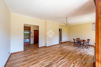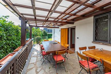 L'abitazione si apre con un ingresso su un ampio e luminoso soggiorno, cuore pulsante della casa, caratterizzato da grandi aperture che collegano direttamente al meraviglioso giardino privato. Quest'ultimo circonda l'abitazione su più lati, offrendo spazi verdi ben curati e una suggestiva zona veranda, ideale per organizzare pranzi e cene all'aperto in totale tranquillità e privacy. Sempre al piano terra è presente una cucina abitabile dalle dimensioni generose, studiata per accogliere tutta la famiglia e perfetta per chi ama cucinare e condividere momenti conviviali. Completa il livello un comodo bagno di servizio.