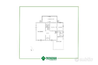 Lasciando il soggiorno alle spalle, scendendo tre gradini, si trova la zona lavanderia con bagno finestrato dotato di doccia. Dalla lavanderia si accede direttamente al box per due auto e cantina sottostante.