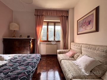 Al primo piano, salendo le scale, arriviamo alla zona notte con due camere da letto matrimoniali, studio mansardato, terrazza e secondo servizio igienico finestrato.