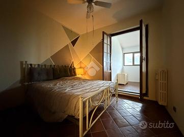 Entrando si accede alla zona giorno composta da ampia sala luminosa con camino, cucina abitabile, prima camera da letto matrimoniale, due servizi igienici, di cui uno finestrato.