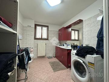 Al piano terra, di 66 mq, troviamo l'ingresso all'abitazione e la taverna con lavanderia. Attualmente la taverna è stata suddivisa in due stanze, ad oggi usate una come ulteriore camera da letto e la seconda come ulteriore cucina, e dispone di camino.