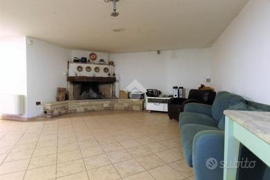 La seconda unità abitativa è posta la piano terra con ingresso sia autonomo sia interno e consiste in un appartamento di circa 80 mq distribuito con soggiorno, cucina con camino, due camere e bagno con doccia.