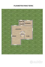 Il tutto è circondato da un giardino perimetrale su quattro lati, offrendo un ampio spazio verde privato per rilassarsi o per attività all'aperto.