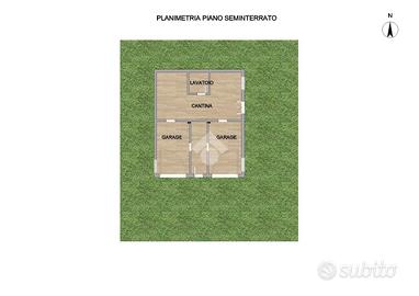 Al piano seminterrato, troveranno spazio un doppio garage, una cantina e un lavatoio, con una scala centrale che conduce al primo piano, dove si sviluppa la zona giorno con cucina e bagno, entrambi con accesso a portici e balconi per godere dell'esterno.