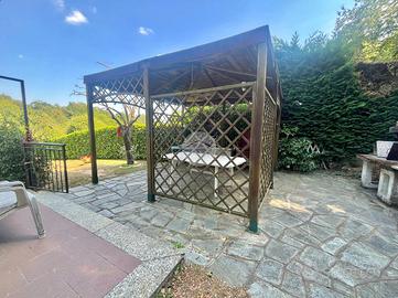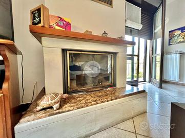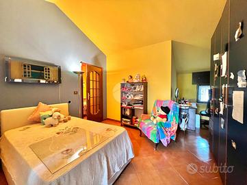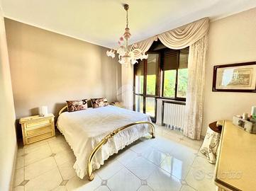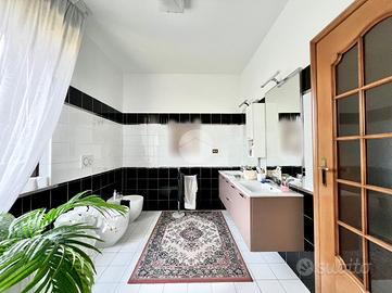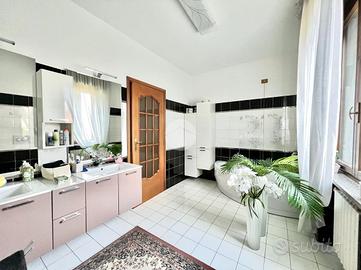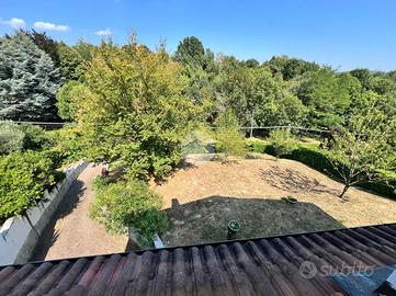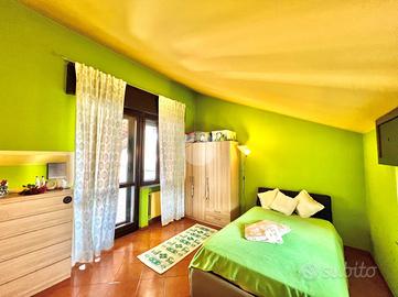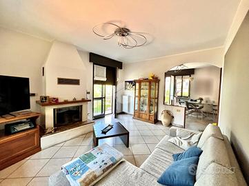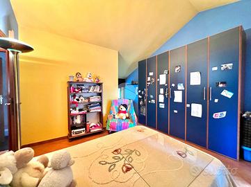 Al piano terra si viene accolti da un luminoso soggiorno di generose dimensioni con un affascinante camino a legna che dona calore e carattere all'ambiente, una cucina abitabile con uscita diretta sul giardino e sulla zona esterna attrezzata con gazebo e barbecue. Un comodo disimpegno collega la zona giorno alla zona notte, composta da due camere da letto, di cui una con cabina armadio, e un bagno moderno ristrutturato circa due anni fa. Salendo al piano superiore troviamo altre due camere da letto e un secondo bagno, entrambe con accesso diretto a un ampio terrazzo di circa 35 mq, ideale per godere di uno spazio privato con vista aperta. Al piano interrato completano la proprietà un box auto doppio, una spaziosa taverna e una lavanderia, offrendo così tutto lo spazio necessario per la vita quotidiana e per momenti di svago.