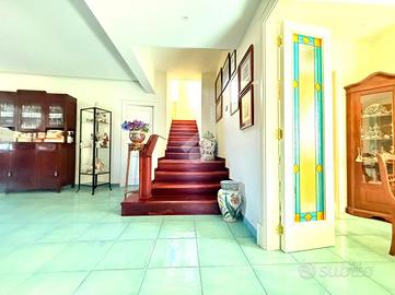 L'immobile si sviluppa su due livelli: al piano terra troviamo un ingresso in disimpegno che conduce ad un primo bagno, uno studio, un doppio soggiorno, una sala da pranzo, una cucina abitabile, una lavanderia e un ripostiglio, offrendo ambienti spaziosi e funzionali, perfetti per la vita quotidiana e l'accoglienza degli ospiti.