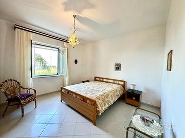 Una scala esterna conduce al terrazzo sovrastante, dal quale si apre una suggestiva vista panoramica sul mare, ideale come area solarium o spazio da attrezzare per momenti di convivialità all'aperto.