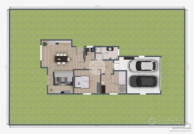 Questa abitazione si estende su un lotto di 500 mq e la superficie dell'immobile di 110 mq, offrendo spazi ben distribuiti e funzionali.