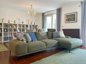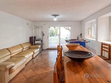 Il piano semi-interrato, accessibile esternamente e non collegato internamente al resto dell'abitazione, ospita una grande taverna con zona giorno, bagno finestrato e cantina. Questa porzione dell'immobile può essere facilmente trasformata in una dependance per ospiti oppure in uno studio indipendente. Completa la proprietà un comodo accesso carraio che conduce a un ampio garage doppio. Il giardino privato, ben curato, offre spazio sufficiente per l'eventuale realizzazione di una piscina o, con qualche intervento, ulteriori posti auto. Questa soluzione rappresenta una rara opportunità per chi desidera vivere nel cuore di Bardolino, in una casa elegante e silenziosa, immersa nella tranquillità pur rimanendo a pochi passi dalle rive del lago e dai principali servizi del centro.