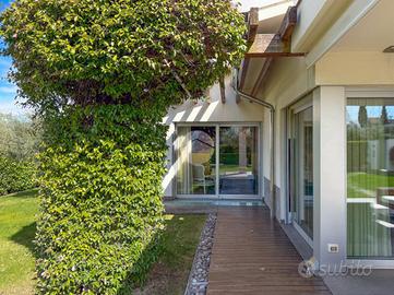 BARDOLINO: Villa Singola con Giardino Privato e Finiture di Pregio In una delle zone più tranquille e riservate all'interno di un villaggio privato, proponiamo in vendita splendida villa singola di rappresentanza, caratterizzata da ampi spazi, privacy e finiture di alto livello. La proprietà si sviluppa su tre livelli e offre una superficie generosa, perfettamente distribuita per garantire comfort e funzionalità. Al piano terra l'ingresso conduce a un'ampia zona living, luminosa grazie alle grandi vetrate, con affaccio diretto sull' ampio porticato e sul giardino privato finemente piantumato; la cucina, moderna e completamente attrezzata, è pensata per soddisfare anche i clienti più esigenti. La zona notte ospita due camere da letto, tra cui una suite padronale con cabina armadio e un grande bagno; quest'ultimo rifinito con materiali di pregio offre soluzioni eleganti e contemporanee. Al piano primo (mansardato) troviamo un locale unico adibito a camera da letto con bagno. Al piano interrato accessibile da una scala esterna trovano spazio una zona giorno completa di angolo cottura e sala da pranzo, due camere da letto, un bagno, una stanza adibita a piccola palestra, un locale ripostiglio ed una pratica lavanderia. All'esterno, la villa è circondata da un curato giardino privato, ideale per momenti di relax e convivialità, con possibilità di realizzare piscina. Completano la proprietà ampi spazi accessori e due posti auto coperti. Dotata delle più moderne tecnologie, tra cui impianti domotici, riscaldamento a pavimento e sistemi di sicurezza avanzati, questa residenza rappresenta una soluzione unica per chi è alla ricerca di esclusività e comfort. Completa la proprietà un ampio parco condominiale con piscina, campo da tennis, da basket e calcetto. Per ulteriori informazioni o per organizzare una visita, non esitare a contattarci.