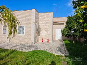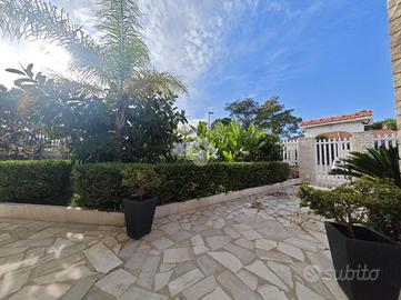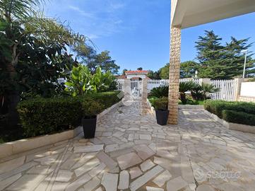 Giovinazzo - All'interno dell'esclusivo complesso residenziale Valentini, dotato di accesso diretto alla spiaggia privata, proponiamo in vendita una prestigiosa villa di ampia metratura, sviluppata interamente su un unico livello. L'immobile si sviluppa su una superficie di 205mq e si apre sull'ingresso che conduce all'ampio e luminoso salone, cuore della zona living. A seguire, troviamo una cucina abitabile comoda e funzionale, quattro spaziose camere da letto, pensate per garantire comfort e privacy a tutta la famiglia, un pratico vano deposito e doppi servizi. La proprietà è impreziosita da un curato giardino piantumato di circa 500 mq, perfetto per vivere appieno gli spazi esterni. Completano il tutto, quattro comodi posti auto, di cui tre interni e uno esterno. Le rifiniture sono di ottimo livello e comprendono: porta blindata, videocitofono, grate di sicurezza, impianto d'allarme, zanzariere, infissi in vetrocamera a taglio termico, tende da sole, climatizzatori e impianto di riscaldamento autonomo con caldaia alimentata a metano. L'immobile si presenta in buono stato di manutenzione, sia all'interno che all'esterno. Una soluzione ideale per chi desidera vivere in un contesto signorile, riservato e a due passi dal mare, senza rinunciare a comfort, spazio e qualità.