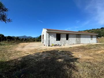 La struttura, inserita all'interno di un lotto di circa 8000 metri quadri e raggiungibile percorrendo un brevissimo tratto di strada sterrata, si presenta già ultimata. Gli ambienti interni, già definiti attraverso le tramezzature, formano un trivano composto da pranzo-soggiorno, due camere da letto e bagno, tutti collegati attraverso un ampio andito. A completare la proprietà l'ampio garage, sempre inserito nel corpo principale della costruzione. L'immobile presenta la copertura già ultimata e le pareti intonacate: per ultimare la soluzione sono necessari l'installazione degli impianti, gli infissi e i rivestimenti. Si consiglia la soluzione a chi cerca indipendenza e possibilità di personalizzazione delle finiture. Nessun costo condominiale.