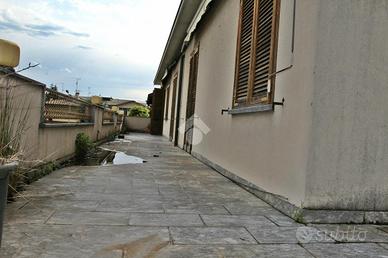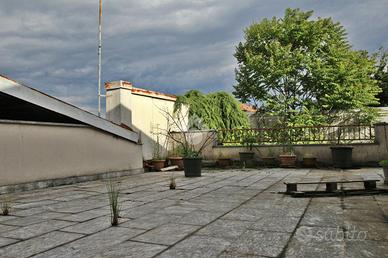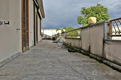 BARLASSINA - Prospiciente la Statale dei Giovi e di immediato accesso sulla Milano-Meda, proponiamo in assoluta indipendenza appartamento al piano primo di mq. 200 con ampio terrazzo di mq. 120 circa, sottotetto recuperabile della medesima metratura, oltre piano terra con ampio portico e area esterna e giardino. Possibilità di creare più unità abitative.