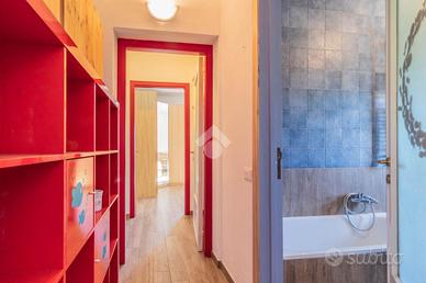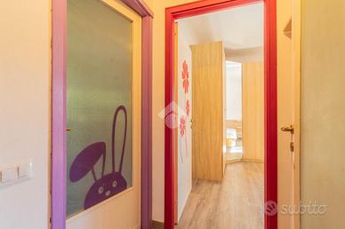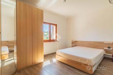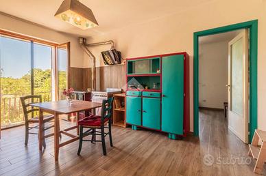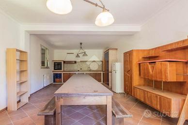 Al piano superiore troviamo una cucina con balcone, un ampio salone con terrazzo di circa 40 mq, un bagno e due camere da letto, di cui una con bagno privato.