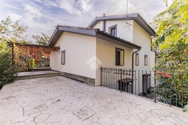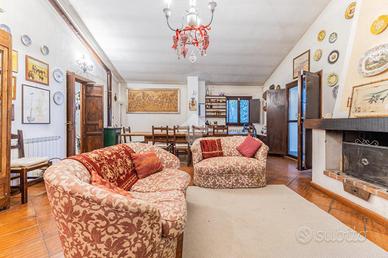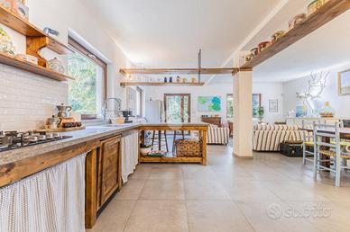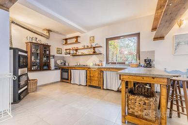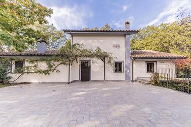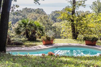 Villa con piscina e vista sul lago di Bracciano - tra Sutri, Trevignano e Bassano Romano Proponiamo in vendita, un'esclusiva villa con piscina, un ettaro di terreno e vista panoramica sul lago di Bracciano. Un rifugio immerso nella natura che unisce l'eleganza di una residenza di rappresentanza al calore di uno chalet di campagna, offrendo quiete, privacy e charme. La costruzione principale, edificata nei primi anni 2000 e ampliata nel 2024 con una nuova ala moderna, mantiene il fascino dei casali autentici grazie ai pavimenti in cotto, agli ampi saloni con camino e alla presenza di numerose camere, molte delle quali con bagno privato. Il piano terra accoglie la parte più recente della villa, con una luminosa zona living e cucina a vista in legno con piano in marmo, una camera da letto e un bagno. La parte originaria ospita un corridoio con armadiature su misura, due camere con bagno e un ampio salone doppio con camino, affacciato sul giardino, oltre a spazi dedicati a hobby e relax. Il piano superiore, dotato di secondo ingresso indipendente, si apre su un disimpegno ampio, un soggiorno con cucina e l'accesso al portico con vista sul lago di Bracciano. Completano il livello tre camere, due bagni e una suite padronale con saloncino con camino, camera e bagno privato, ideale come spazio riservato e panoramico. A completare la proprietà, due dépendance indipendenti, ideali per ospiti o per un utilizzo ricettivo. Definita dalla proprietaria come "la casa della famiglia", questa villa è stata pensata per essere vissuta pienamente, ideale per chi cerca una dimora elegante nel verde, o ancora per una clientela estera in cerca di autenticità, comfort e fascino italiano.