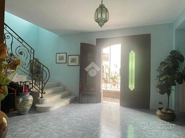 Nel centro del paese di Casalduni, accanto alla chiesa, proponiamo in vendita splendida villa singola in ottime codizioni abitative su due livelli, divisa in zona giorno e notte con una comoda ed eleganta scala in marmo. L'ingresso della villa è d'impatto confortevole e accogliente ben divisa, il salotto doppio affaccia sul giardino di proprietà, ideale anche per le cene e le serate estive, la cucina abitabile ha il camino, e nella zona notte le camere da letto sono comode e spaziose, oltre i doppi servizi, al piano superiore completa una parte dedicata alla privacy tra studio e passioni. La villa è una vera chicca per chi vuole godersi un pò di fresco nel periodo estivo e avere una soluzione non isolata essendo al centro del paese servito da farmacia, bar, supermarket. Non è difficile da raggiungere Casalduni, l'uscita da prendere è Ponte a pochi km da Benevento, e si prosegue per il paese circondato da tanto verde ma da altre abitazioni e ville singole. Facile da raggiungere.