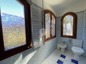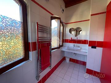 Nella mansarda, caratterizzata dalle travi a vista, troviamo due ulteriori unità abitative attualmente unite in un unico appartamento quadrilocale con quattro bagni.