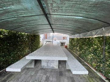 Il box auto, comunicante con l'immobile, è di 50 mq, e permette così il posteggio fino a quattro auto di medie dimensioni.