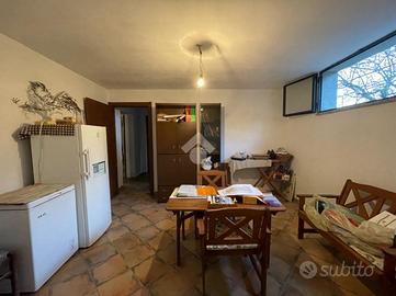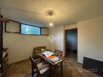 Il piano seminterrato, raggiungibile sempre da scala interna, è ben distribuito e di copiosa metratura, rifinito ad oggi con una grande sala destinata ad uso taverna/pied-à-terre grazie al suo bagno collocato lì di fianco, e altre due camere, di cui una con vano caldaia, consentendo una giusta destinazione in base alle proprie esigenze.
