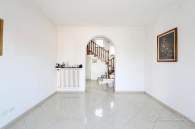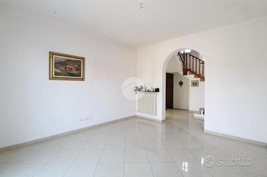 La villa è composta dalla zona giorno al piano terreno, completamente ristrutturata, dove troviamo l' angolo cottura, il tinello, il soggiorno, la camera e il bagno. Il piano primo è formato da tre camere da letto e un bagno finestrato con possibilità di ricavare il secondo, oltre che da tre balconi che affacciano sul verde circostante.