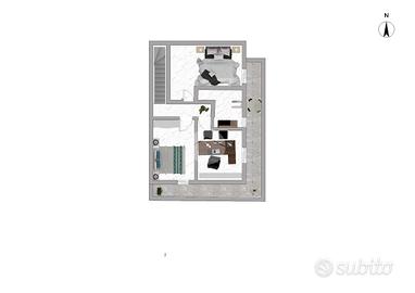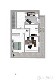 Tramite l'elegante e comoda scala interna si raggiunge la zona notte al piano primo composto dalle due camerette con affaccio sul balcone, dalla camera matrimoniale con affaccio sul secondo balcone distinto e dal bagno finestrato dotato di box doccia.