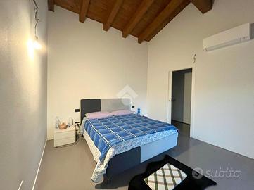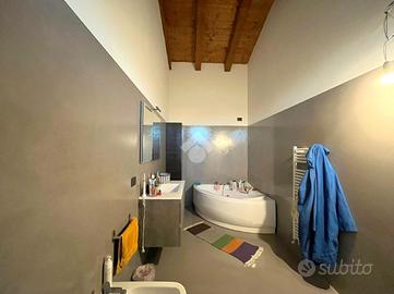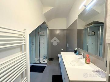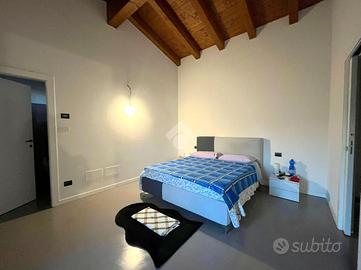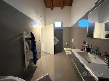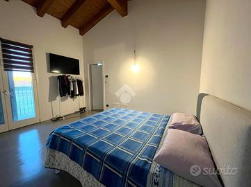 Salendo al piano superiore, un ambiente riservato accoglie la suite padronale: una vera e propria area privata con cabina armadio e bagno dedicato, pensata per garantire comfort e privacy.