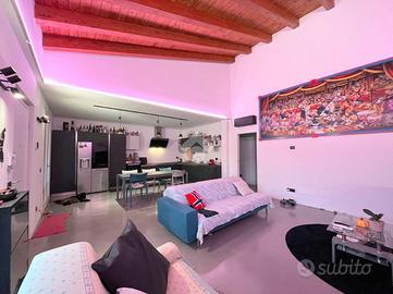 Al piano terra, l'ingresso si apre su un'ampia e luminosa zona living con cucina a vista, dove materiali e colori creano un'atmosfera calda e contemporanea. Lo stesso livello ospita due camere da letto e un bagno elegante, curato nei minimi dettagli.