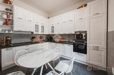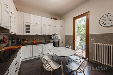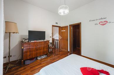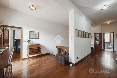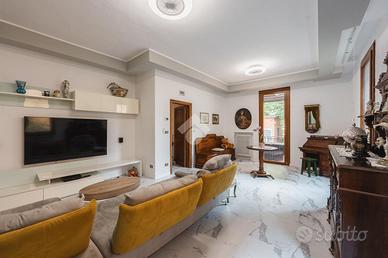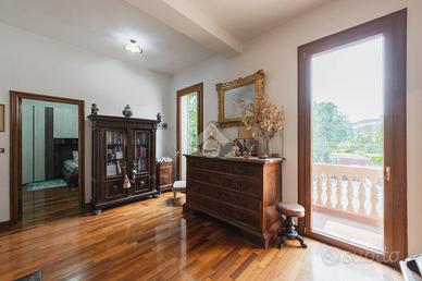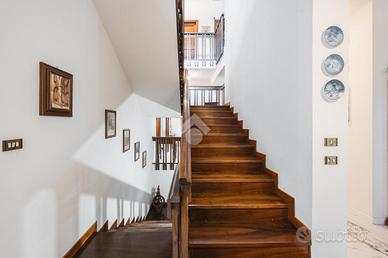 La residenza si sviluppa su tre livelli, offrendo ampie superfici abitative perfettamente distribuite. Al piano principale, l'ingresso accompagna verso un grande salotto luminoso, ideale sia per accogliere gli ospiti che per i momenti di vita quotidiana. La cucina, ampia e abitabile, si apre direttamente sul giardino privato, un piacevole spazio esterno, curato e in buona parte pavimentato, perfetto per pranzi all'aperto, cene estive e momenti di relax in totale tranquillità. La zona notte, disposta al livello superiore, ospita quattro camere da letto di generose dimensioni, oltre ad un comodo studio, perfetto come spazio per lavorare da casa o come ulteriore camera all'occorrenza. I cinque bagni, distribuiti tra i tre piani, sono tutti finemente rifiniti, pensati per garantire il massimo del comfort a ogni componente della famiglia.