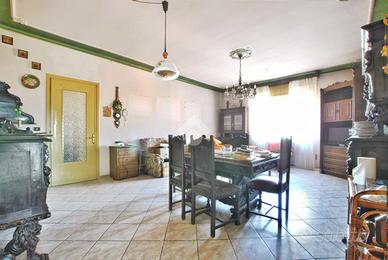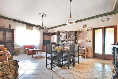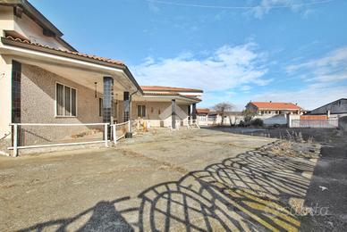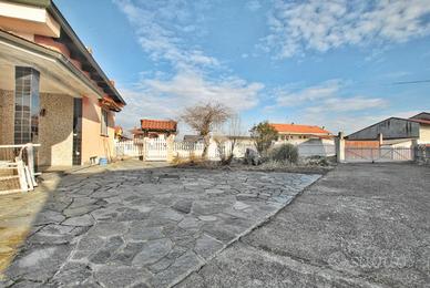La soluzione proposta di seguito è una villa sviluppata su un unico livello, ubicata nella zona periferica del paese. La dimora dispone di due ingressi, di cui il primo è utilizzato come principale. La stanza di spicco è un ampio salone di circa 40 mq: illuminato da due grandi finestre, lo spazio è ideale per chiunque cerchi una stanza aggiuntiva da adibire a studio, biblioteca, sala cinema o sala relax. La zona giorno, che si sviluppa oltre l'ingresso, è composta dal soggiorno e dalla cucina; quest'ultima accede alla tavernetta, riscaldata tramite camino a legna, alla cantina e alla dispensa del piano sottostante. Un lungo corridoio conduce alle altre stanze: due camere da letto, il ripostiglio e il bagno, accessoriato con doccia e allacci per la lavatrice. Il secondo ingresso, precedentemente citato, oltre ad accedere al corridoio, consente l'accesso diretto al capannone di circa 300 mq.