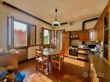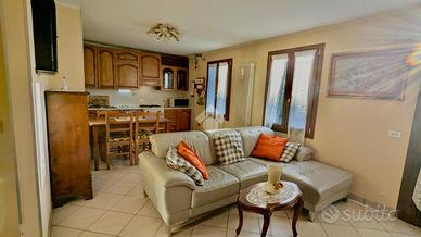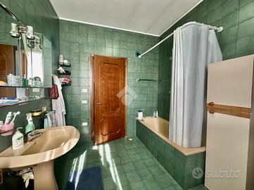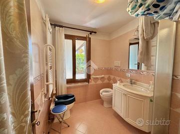 L'immobile disposto su piani sfalsati è composto al piano terra da ingresso, soggiorno con angolo cottura, camera matrimoniale, bagno finestrato e lavanderia. Salendo tramite la scala abbiamo acesso al piano superiore composto da un ampia sala da pranzo molto luminosa dalla quale abbiamo accesso al primo poggiolo, un cucinino separato con uscita sul secondo poggiolo, tre camere da letto matrimoniali ed il secondo bagno finestrato. Al piano semi interrato troviamo la taverna provvista di un grazioso caminetto.