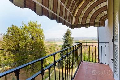 Al piano terra si trova la zona giorno, composta da un ampio e luminoso soggiorno, ideale per momenti di convivialità e relax, con accesso diretto ad uno spazioso terrazzo con piacevole vista panoramica sulle Langhe.