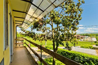 Tramite scala interna si accede al piano primo, composto da cinque camere da letto, dai doppi servizi, da un ripostiglio e da due balconi, con piacevole vista panoramica sulle Langhe.