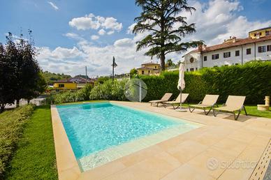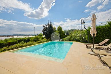 All'esterno, la proprietà gode di circa 200 mq di giardino privato ed è arricchita da una stupenda piscina, perfetta per momenti di relax e svago durante la bella stagione; la presenza poi di un piacevole terrazzo che percorre l'intero perimetro della casa e di un'ampia zona di porticato crea inoltre rinfrescanti zone d'ombra da godere per pranzi e cene all'aperto.