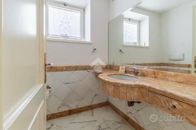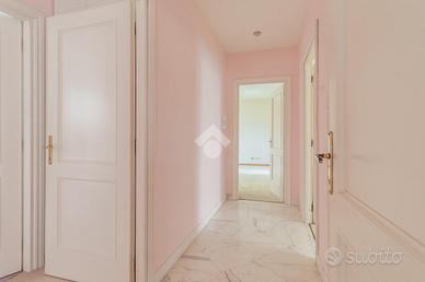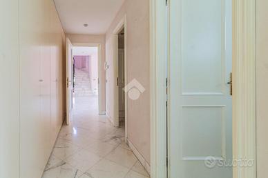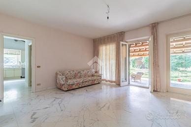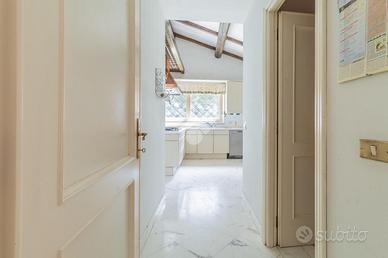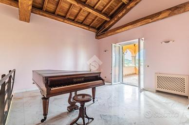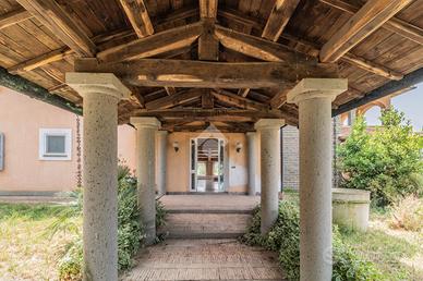 Un ampio doppio salone di rappresentanza accoglie gli ospiti all'ingresso, regalando sin da subito una sensazione di apertura e prestigio. Dal living si accede a un portico in legno che si affaccia sul giardino, ideale per momenti di relax o convivialità. Completano il piano una spaziosa cucina abitabile, ulteriori ambienti versatili e due bagni.