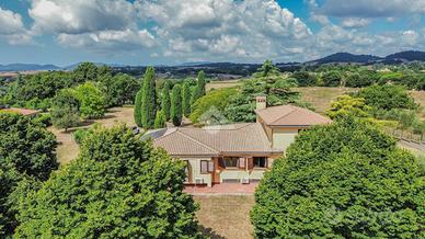 Una proprietà solida ed elegante, immersa nel verde di un terreno pianeggiante di circa un ettaro, completamente fruibile.