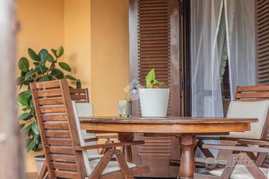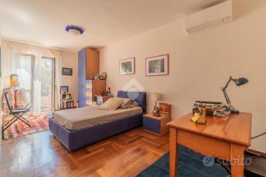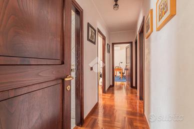 Soggiorno, cucina abitabile, tre camere da letto e due bagni di ampie dimensioni. Ambienti ben distribuiti, impreziositi da pavimenti in parquet e infissi e porte in legno massello, che conferiscono calore e solidità agli spazi.